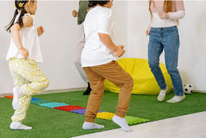 個別で身につけた力を、小集団(最大5名)の中で般化させていきます。同年代の小集団の中で、社会性やコミュニケーションスキルを身につけるプログラムや、運動発達機能を促す様々な活動に取り組んで頂きます。
